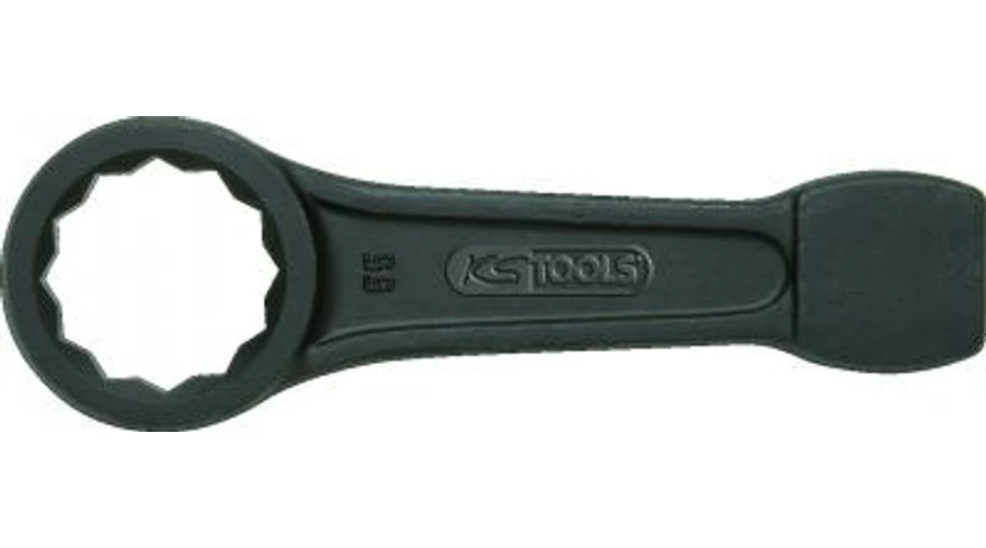 Üthető csillagkulcs. Méret: 50 mm. Alapanyaga kovácsolt és edzett acél, a meghajtó felület gépi megmunkálással készült, hogy jó felületi összekapcsolódást biztosítson a kötőelemmel. A lapos oldalfelület kalapáccsal üthető a nehezen oldható kötőelemek meglazítása vagy megszorítása céljából. |