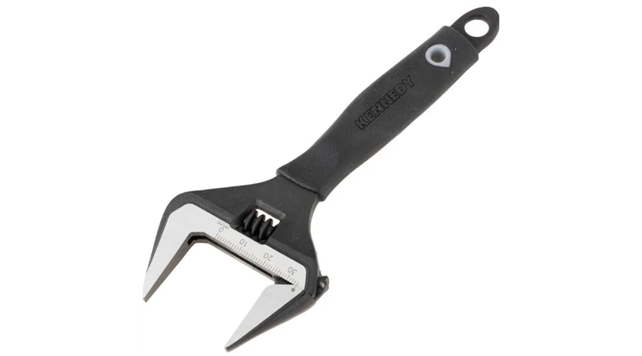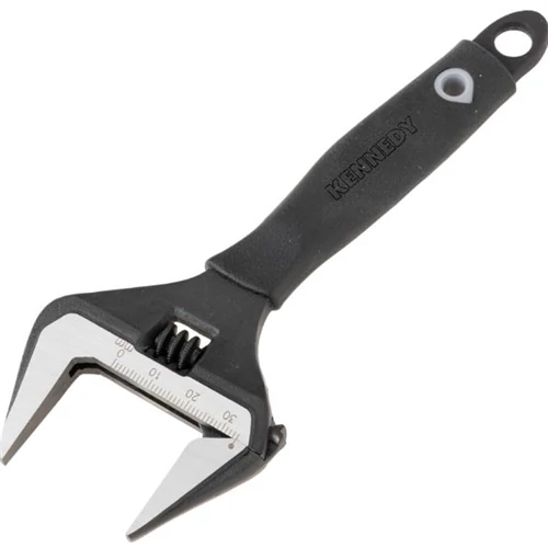 Süllyesztékben kovácsolt króm-vanádium acél. Gumírozott, kényelmes fogású nyél. Ideális szerszám vízvezeték-szerelésnél, szerelési és járműipari alkalmazásoknál. Ultravékony fej a jobb hozzáférés érdekében. Metrikus skálabeosztás. A hagyományos csavarkulcsokhoz képest több mint 50%-kal szélesebb szorítópofa.