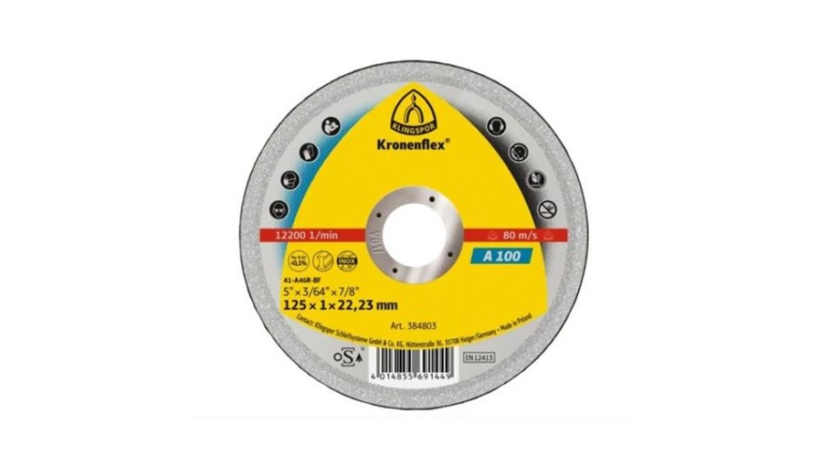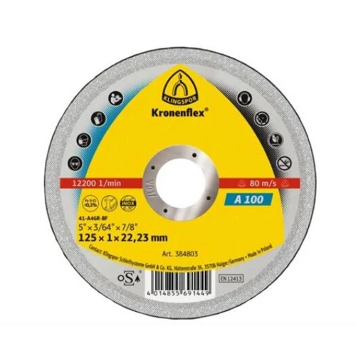 Darabolókorong, KLINGSPOR, A 100, inox, 125 x 1,0 x 22,2 mm