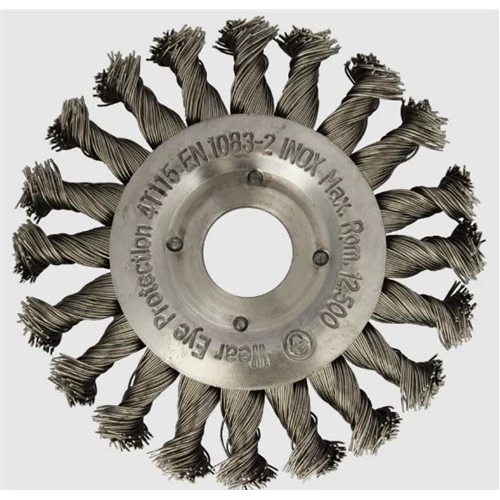 | Körkefék sodrott dróttal:, Agresszív szerszám szélsőséges felhasználási feltételekhez, nagy kerületi sebességgel. Salak, rozsda, reve és mindenfele szennyeződés eltávolításához, hegesztési varratok, profilok és szögletek tisztításához INOX: rozsdamentes, saválló acédrót