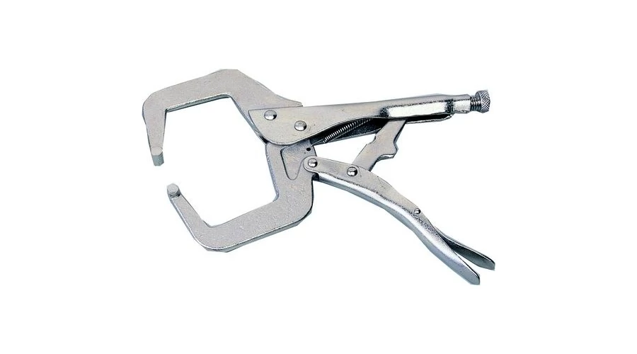 C-profilú önzáró fogó. Nagy szakítószilárdságú, króm-vanádium acél szerszámtest, süllyesztékben kovácsolt, edzettacél-pofák korrózióvédő fényes nikkelbevonattal. A pofa szorítónyomása a recézett fejű csavar segítségével szabályozható, a pofák nyitását rugóerő biztosítja. Karbantartási munkákhoz. A záró mechanizmus a beállított szorítóerővel zárva tartja a fogót, szabadon hagyva a felhasználó mindkét kezét. Nagyméretű C-alakú pofák, amelyek segítségével közbeeső akadályokat kikerülve lehet szorítani. Olyan helyekre javasolt, ahol a normál önzáró fogók nem használhatók.