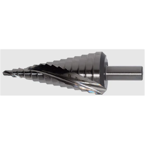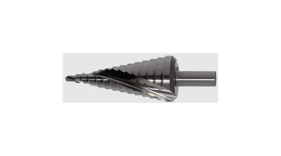CBN köszörülési eljárással HSS gyorsacélból készült fúró, speciális spirálhoronnyal, kötött fúrási lépcsőkkel. Maximum 4 mm lemezvastagságig központosítás, fúrás, sorjázás egy műveletben végezhető. Ezüst színű.