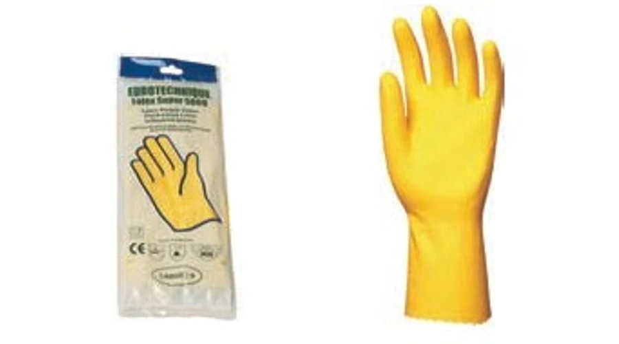 Gumikesztyű, EUROTECHNIQUE, 5029, sárga, 30 cm / 0,5 mm, pamutbolyhozott belső, L