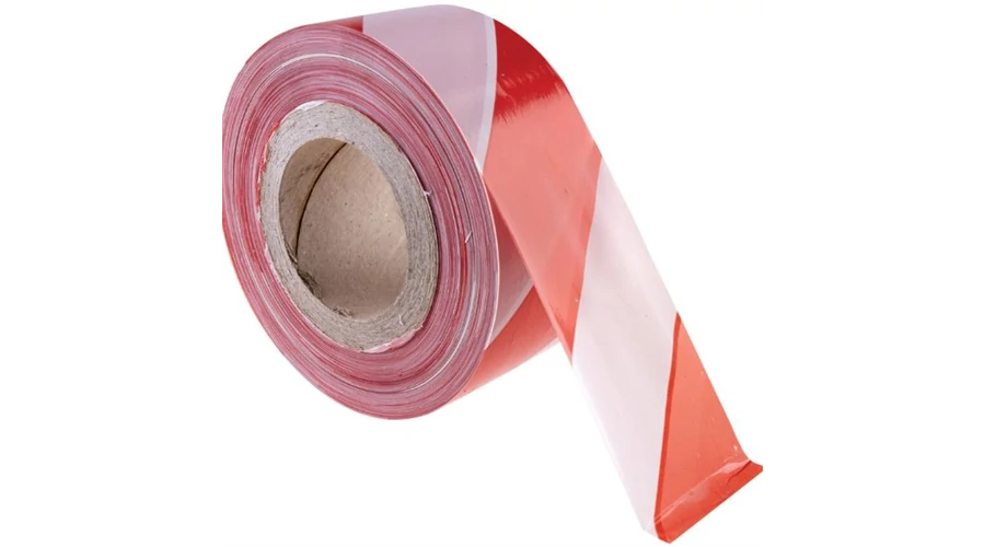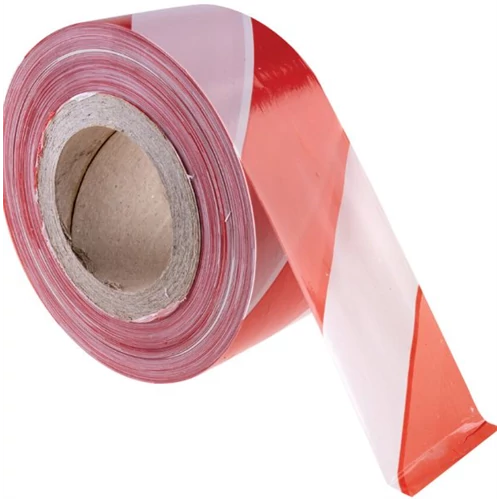 Nem ragasztós, piros/fehér figyelmeztető szalag. Kétszínű kivitel, ferde csíkozás. Adagoló dobozban.