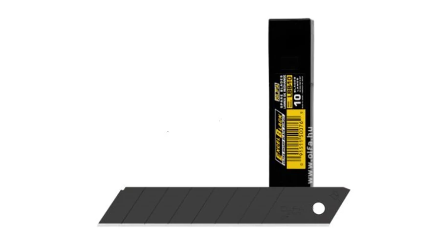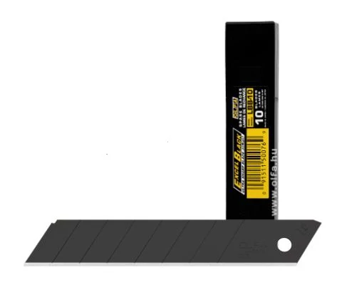 | OLFA LBB-10 - 18 mm-es keskenyebb élszögű edzett tördelhető penge. A következő standard késekhez alkalmazható: SL-1, BN-L, BN-AL, ML, L-1/green, L-2, XL-2, L-5, L5-AL, L-7, L7-AL, OL, NOL-1, NL-AL, PL-1, CL és CMP-2. | |