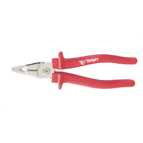 | Cikkszám: 01 08 180 Egyetemes fogó, műanyag nyéllel. Hossz: 180 mm Fej: krómozott. Nyél: műanyag, csúszásmentes Szabvány: DIN ISO 5746 Előnyök: műanyag nyél. Anyag: kovácsolt szerszámacél, teljes egészében nemesített, indukciósan edzett vágóélek.