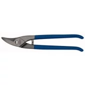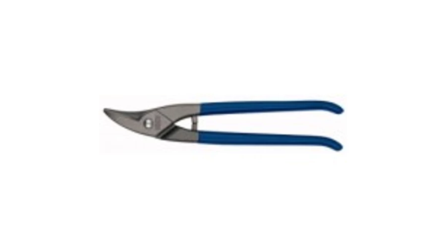 | Alak és lyukvágó olló bal oldali vágáshoz. A normál kivitelezési lemezvágó ollóknál az él és a szár hagyományosan egy darabból van kovácsolva. A vágóerőt az él és a szár hosszúságának viszonya adja. Ollófej és fogantyú egy darabban, süllyesztékben kovácsolt. | |