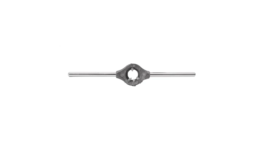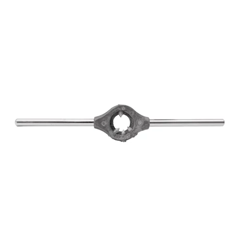 | Cikkszám: 3057 Metszőfordítóvas, menetmetszőkhöz. Menetmetsző Ø: 45 mm Magasság: 18 mm Hossz: 450 mm Metrikus menethez: M16-20 Anyag: szürkeöntvény ház, krómozott acél forgatószárak