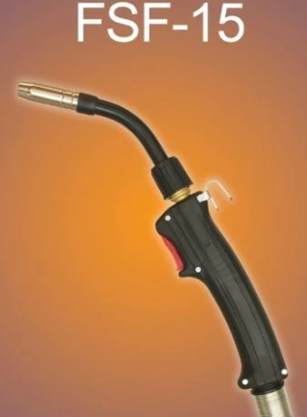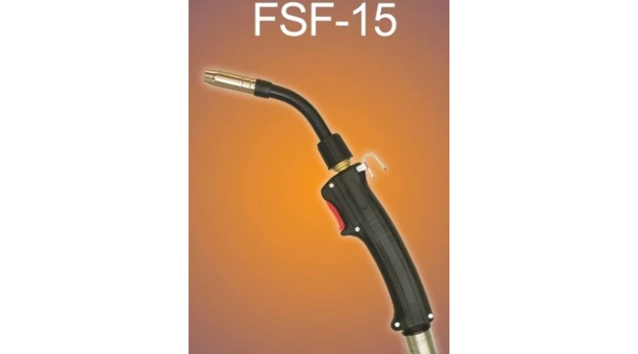 | FSF-15. Kiváló magyar termék. Védőgázas hegesztőpisztoly EURO csatlakozóval, forgatható nyakkal Binzel csereszabatos kopó alkatrészekkel. Jellemzők: Super, vagy Tradicionális markolat. (kék vagy fekete színű markolat) EURO csatlakozó. Hajlékony koaxiális kábel. Gömbcsuklós kábelvédelem. Rugós törésgátló. Műszaki adatok: BI 60 % DC, kevert gáz: 140 A, CO2: 160 A. Hegesztő huzal: 0,6-0,8 mm. Kábel keresztmetszet 15 mm2 Feszültség osztály: L. Hossz:3 m. | |