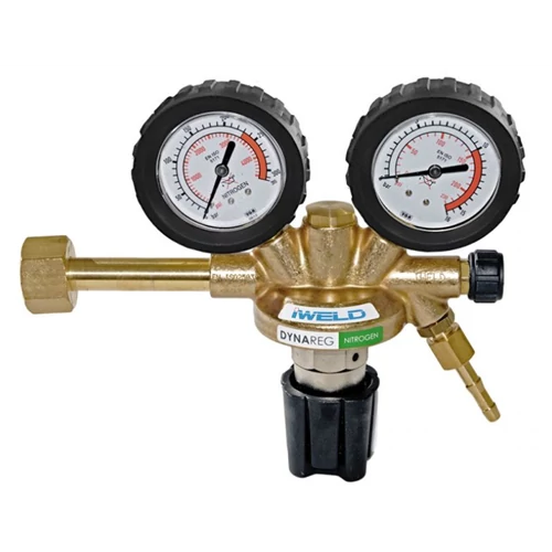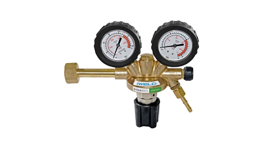 Iweld Dynareg nitrogén palack nyomáscsökkentő 230/10 bar, 2 manométerrel rendelkezik. Hosszú élettartamát, a cserélhető kimeneti csatlakozó menet, a ház megbontása nélkül javítható szabályozó szelep és a törhetetlen és javítható integrált biztonsági szelep garantálja.