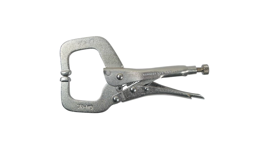 | Cikkszám: KEN-558-9270K Nagyméretű C-alakú pofák, amelyek segítségével közbeeső akadályokat kikerülve lehet szorítani. Olyan helyekre javasolt, ahol a normál önzáró fogók nem használható.