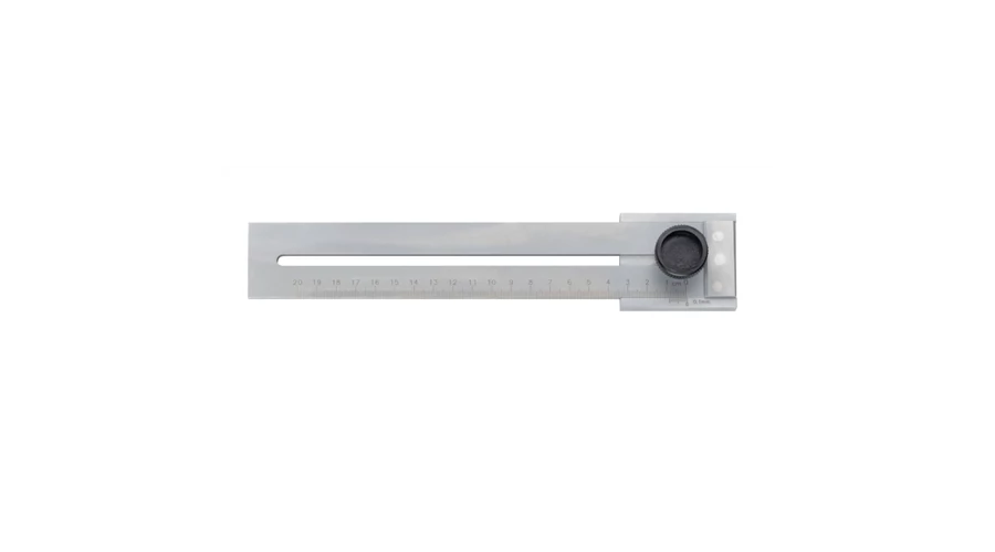 | Párhuzam vonalzó mm beosztással. Előnyök: lézergravírozott, matt skála, rögzítőcsavarral. Műszaki adatok: alsó skála: 0,05 mm. Anyag: acél, matt krómozott. | |