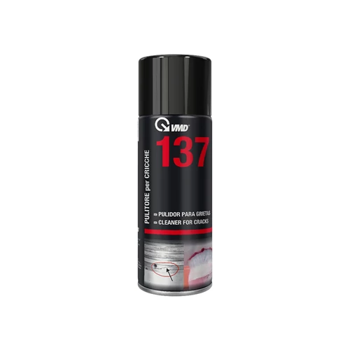 | Cikkszám: 17337 Szavatossági ideje van a terméknek! A hatékony minőségellenőrzés érdekében összeállított készlet (VMD137-138-139) egyik eleme, amely lehetővé teszi a hegesztési varratokon vagy fém elemek présöntvényein talált hibák pontos meghatározását és könnyű megtalálását, anélkül, hogy károsítaná a felületet. Három termékből áll, amelyeket együtt kell használni a hegesztésen belüli lyukak, anyaghibák, repedések és porozitás észlelésére. HASZNÁLATI UTASÍTÁSOK: 1) A VMD 137 használatával a teljes felületet zsírtalanítsa és tisztítsa meg. 2) A felületre egy vékony réteg VMD 138–at vigyen fel, majd várjon 15-20 percet, hogy hasson a penetráló folyadék. 3) Távolítsa el a maradék VMD 138-at a VMD 137 ismételt felhasználásával és várja meg, míg a felület megszáradt. 4) Végül permetezze a VMD 139-et és hagyja, hogy néhány percig működjön az előhívó. Ezután piros nyomok jelennek meg azokon a pontokon, ahol fémhibák vannak, ezek lehetővé teszik a kezelő számára, hogy javítsa azokat. Egyszerű használat. Piros, jól látható jelölés. 3 termék együttesen használandó. Űrtartalom: 400 ml Összetevők: 60% - < 70% aceton; propan-2-one, propanone, 20% - < 25% propán, 10% - < 12,5% bután, 3% - < 5% izobután UFI: 6G0J-D15W-7007-2WPJ