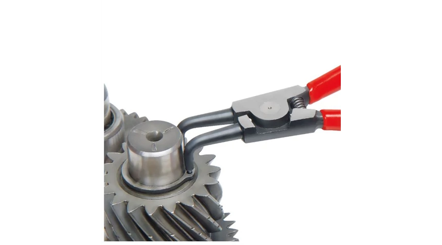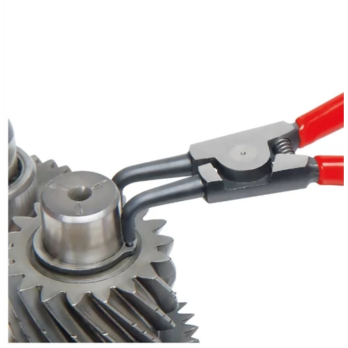 Hajlított seegergyűrű fogó, külső seegergyűrűkhöz, zárórugóval.