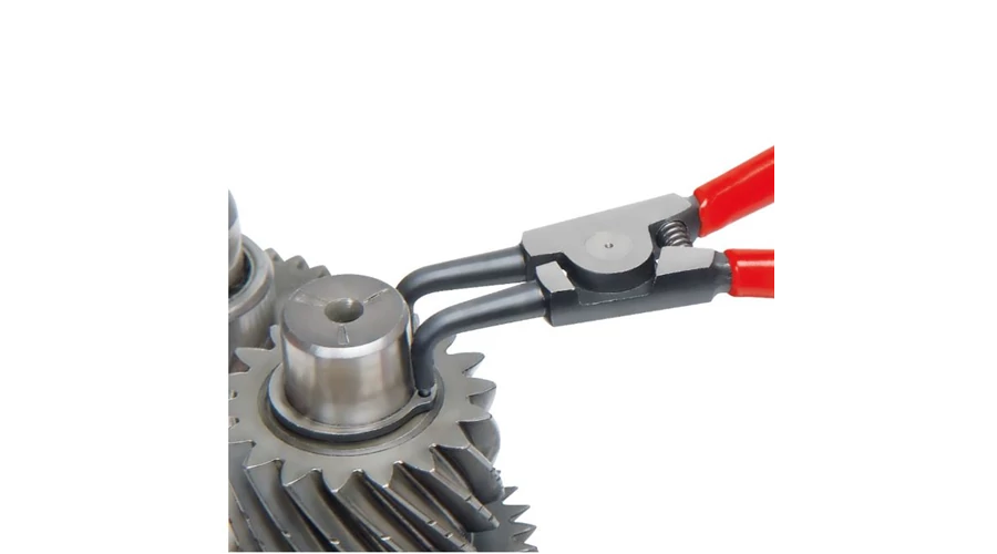 Hajlított seegergyűrű fogó, külső seegergyűrűkhöz, zárórugóval.