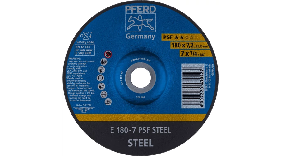 Tisztítókorong, PFERD, acél, 180 x 7,0 x 22,2 mm