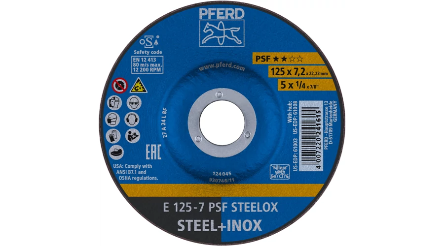 Tisztítókorong, PFERD, inox, 125 x 7,0 x 22,2 mm